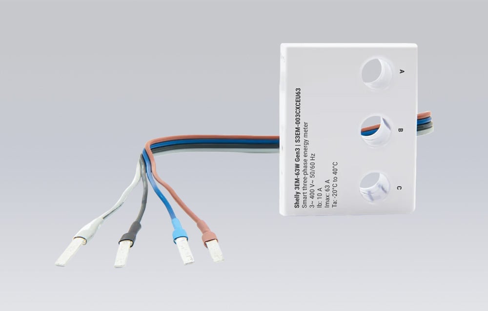 Contor de energie WiFi Shelly 3EM-63W Gen3 cu 1/3 de canal (model cu fir)