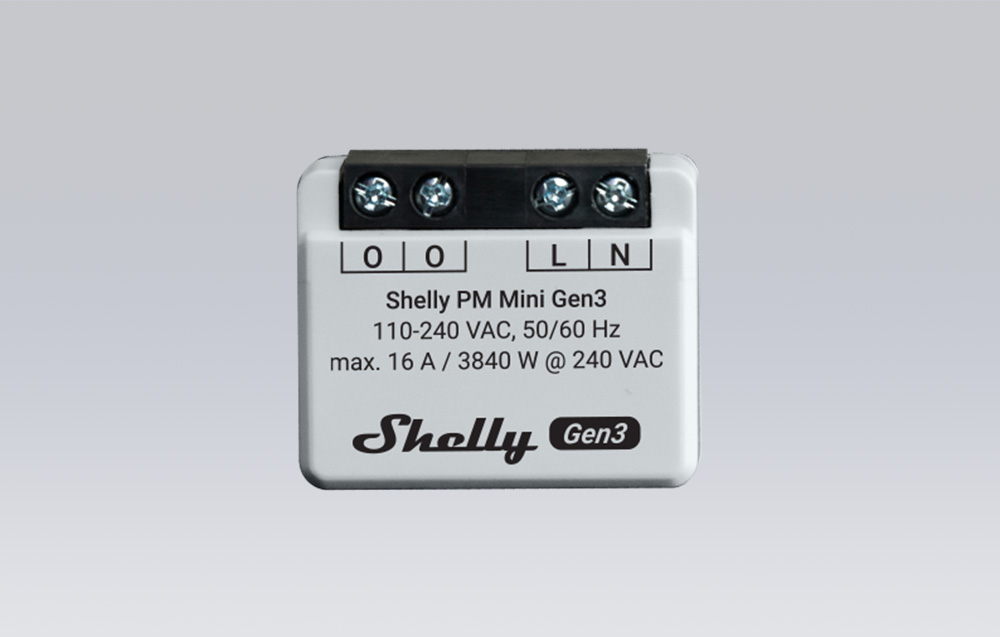 The Shelly PM Mini Gen3 is designed as a small energy meter, allowing you to monitor the energy consumption of connected devices. Thanks to its small form factor (29 × 34 × 16 cm), the PM Mini Gen3 can be easily placed in places that are hard to reach for other devices.